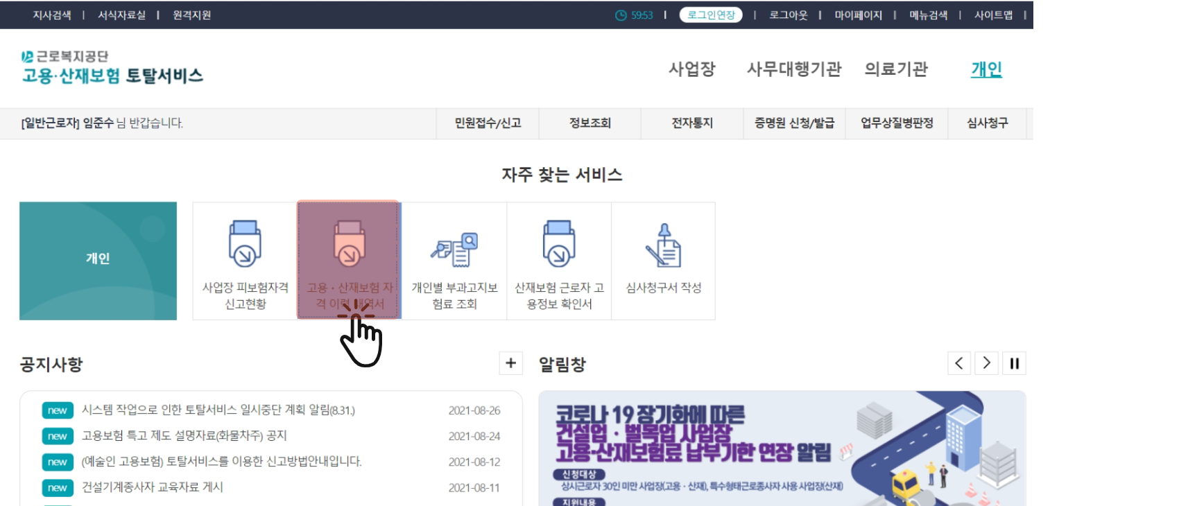 그럴 때 "고용보험자격 이력 내역서" 서류를 개인이 직접 고용 산재보험 토털 서비스에서 확인 발급받으시면 됩니다.