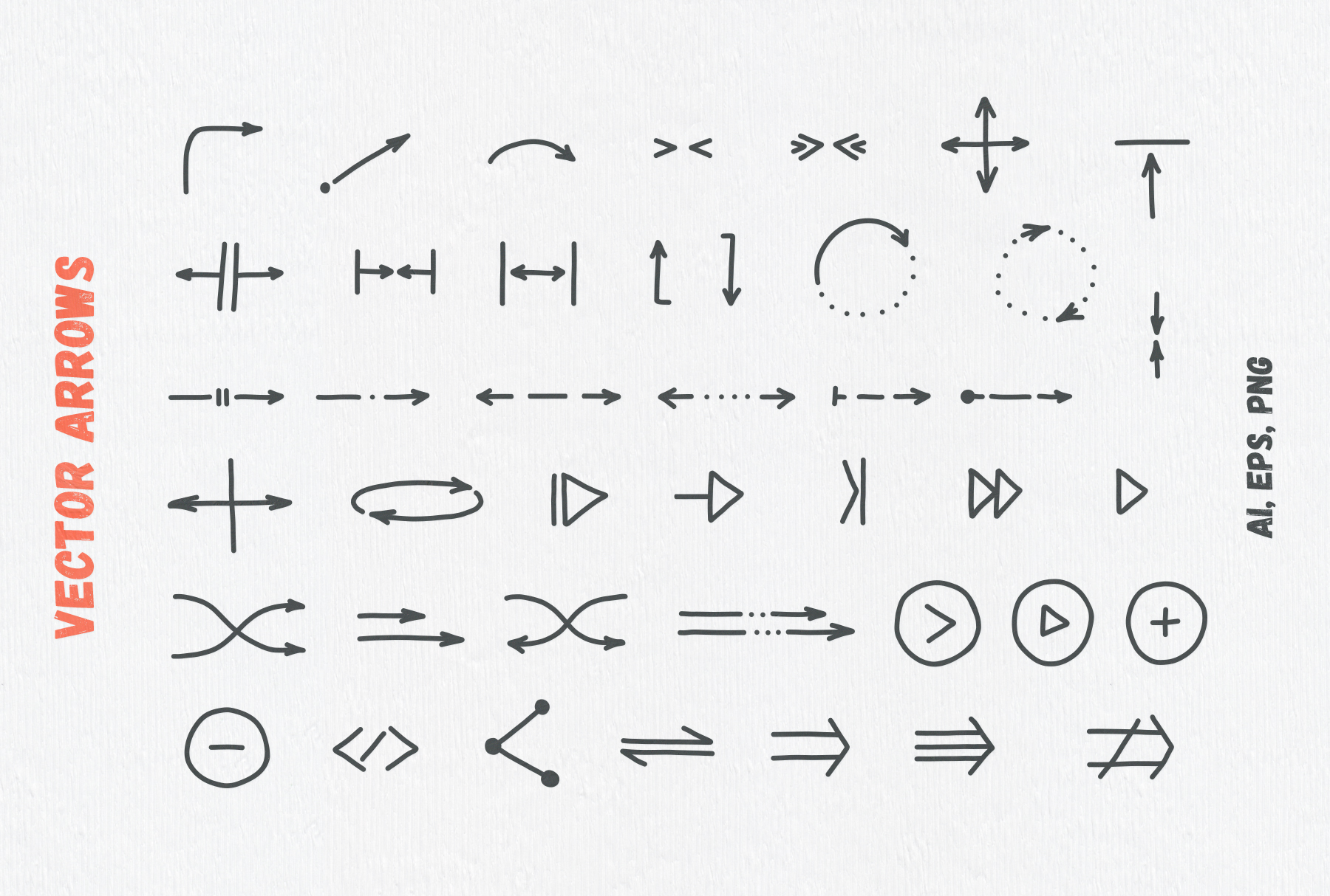 160 개 이상의 벡터 화살표 소재가 세트 20 종류의 Illustrator 용 패턴 브러시도 수록하고 있습니다.