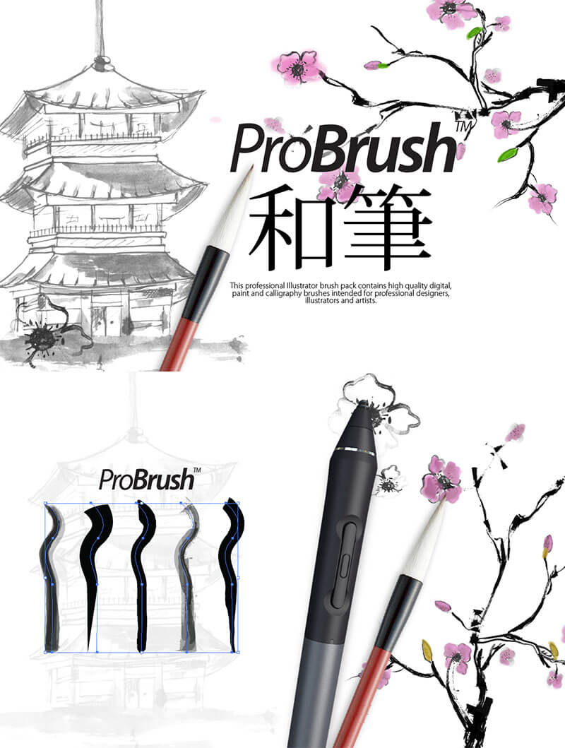 Illustrator를 사용하여 필기 감촉을 손쉽게 표현할 수있는 브러시 패턴 소재 세트.
