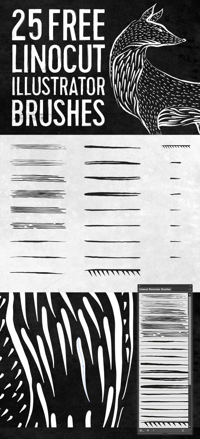 Free Lino Cut Brushes for Illustrator