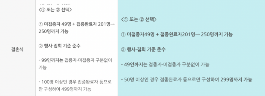 (기존) 식당과 카페의 경우 사적 모임 인원 범위 내에서 미접종자 1인까지는 예외를 인정해 왔지만 → (앞으로)는 미접종자는 식당/카페 이용 시 1인 단독 이용만 허용되는 것으로 변경
