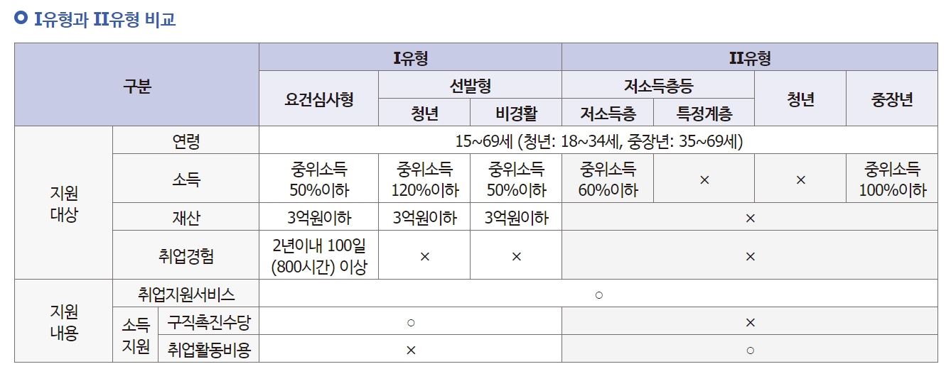 Ⅰ유형은 구직촉진수당과 취업지원 서비스를 지원받습니다.