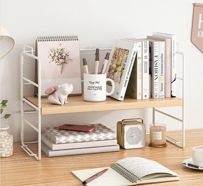 멀티 정리함, 선반, 책 꽂이 등을 사용해 정리하면 다음번 사용에 쉽게 찾을 수 있고 책상이 깔끔해집니다.