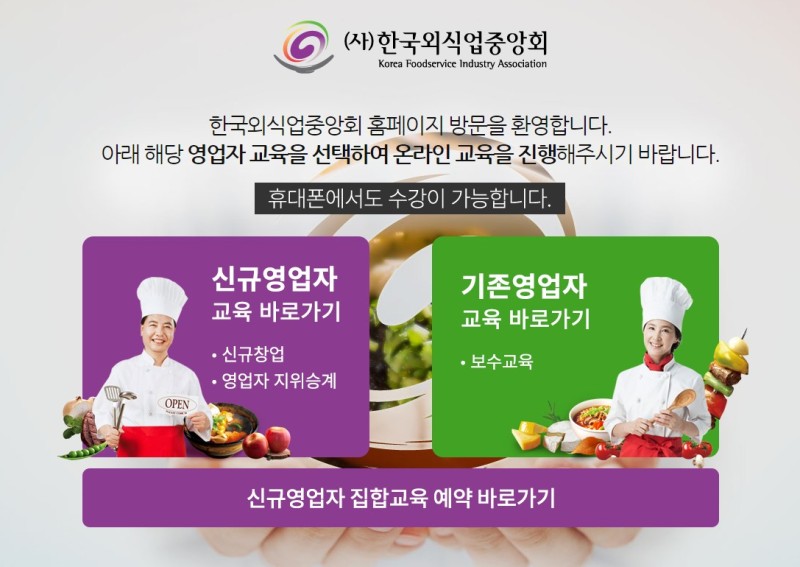 온라인으로 진행하고 있으며 한국외식업중앙회 홈페이지에서 수강이 가능합니다.
