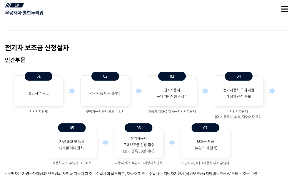 - 보조금 신청: 무공해차 통합누리집을 통해 온라인으로 신청합니다.