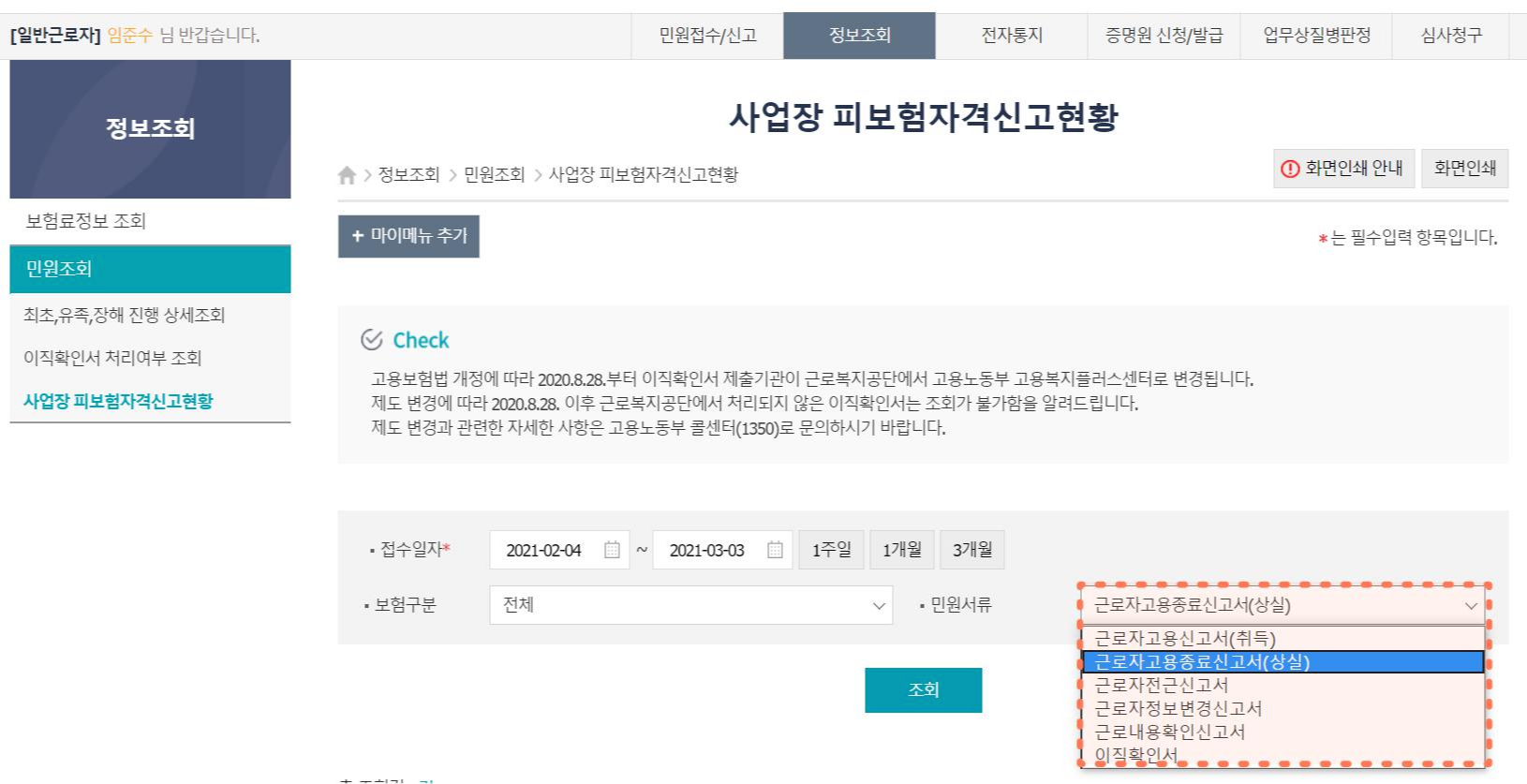 1. 고용보험 피보험자격 상실 신고사실 현황 확인 방법