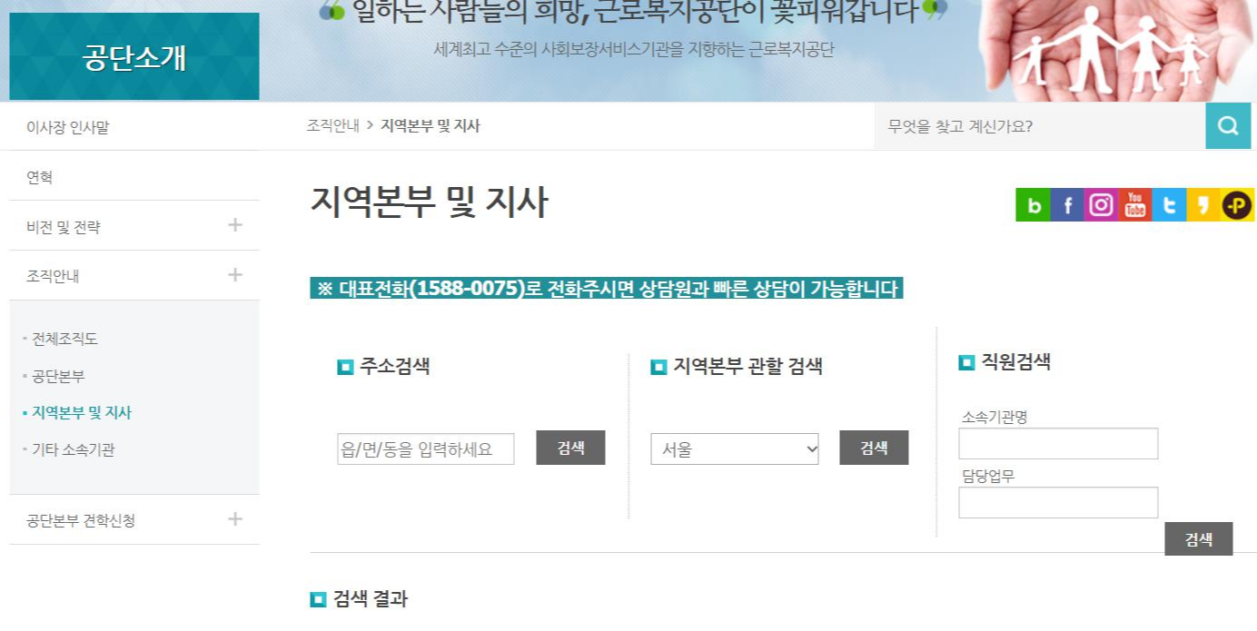 → 관활 지역 근로복지공단 가입 지원부서 담당자의 전화 & 팩스번호 확인