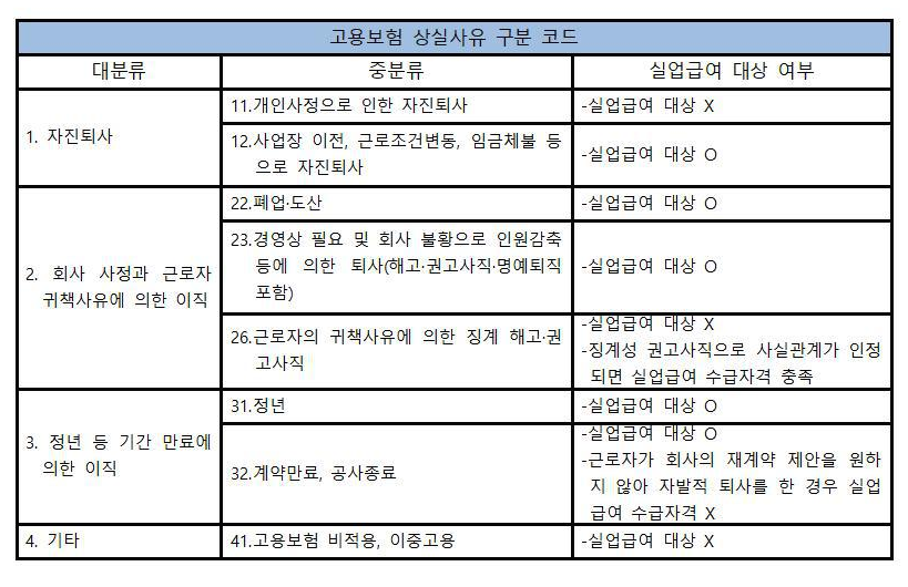 2. 4대 보험 상실신고 시 고용보험 상실 사유구분코드란?