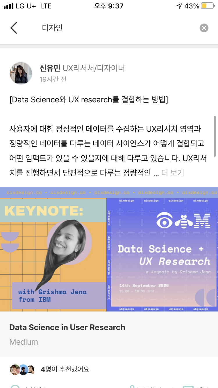 - 커리어 관련 생각과 경험을 꾸준히 게시물로 작성.