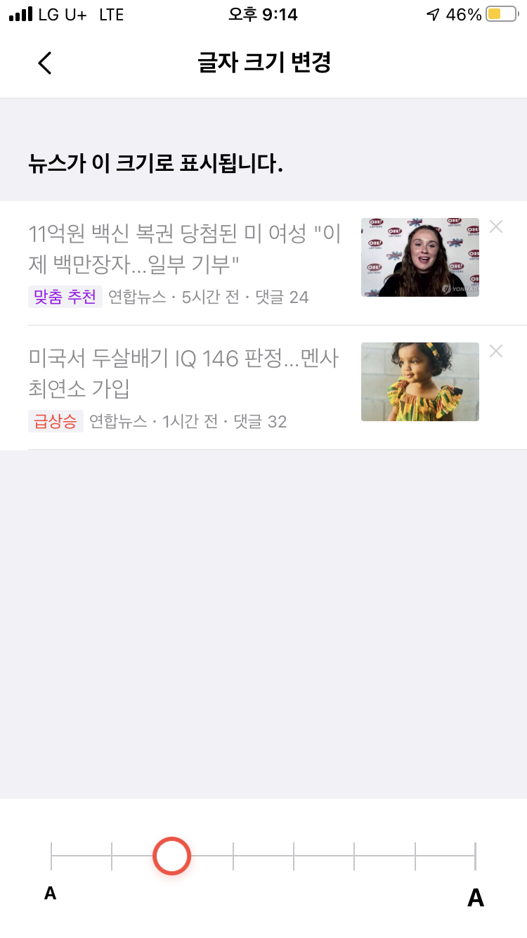 - 글자 크기 조절이 가능해서 큰 글자로 뉴스를 읽을 수 있습니다.